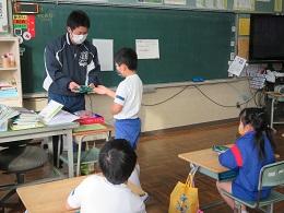 2年生は、担任の先生のお母様より手作りのマスクとマスク入れをいただきました。子供たちの大好きなアニメの絵柄でとても嬉しそうでした。一枚一枚、温かい心のこもったマスクを作っていただき、ありがとうございました。