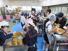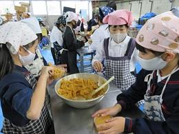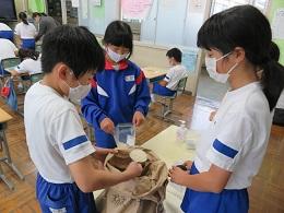 5年生は総合的な学習の時間にお米の学習活動を行っています。地域の方々にお世話になりながら「大海っ子米」を育てることができました。他の学年の子どもたちやお世話になっている地域の方々にお渡しする「大海っ子米」の準備をしています。自分たちも家庭科の時間に炊いて食べてみました。上々の出来に満足顔いっぱいでした。