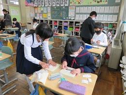 4年生は、昨年育てた大豆を仕込んだ味噌を容器に小分けする作業を行いました。今年も時間をかけた美味しい大海みそができました。それぞれが作成したラベルシールを貼って、お世話になった方々にお渡しする予定です。