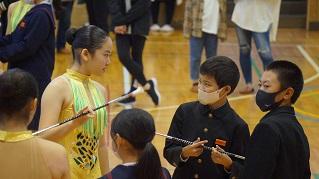 遊学館高等学校バトントワリング部の皆さんに素晴らしい演技を見せていただきました。昨年度全国大会二連覇を果たした圧巻の演技に、子どもたちはただただ感動でした。保護者の方、地域の方、遊学館高校の保護者の方々、多数ご参加いただきました。ありがとうございました。
