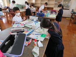 あっという間に季節が秋に変わりました。「芸術の秋」が、各学年の活動でも見られます。4年生は、図工の時間に『まぼろしの花』を描きました。6年生は、家庭の時間に、ナップサックを作りました。地域の先生にミシンを教えていただきながら苦労を経ての作品完成です。
