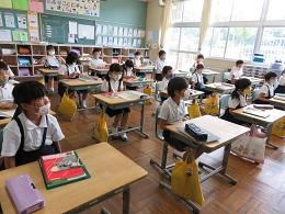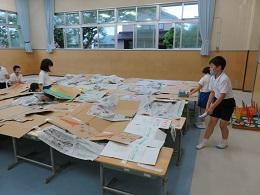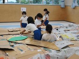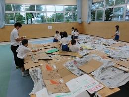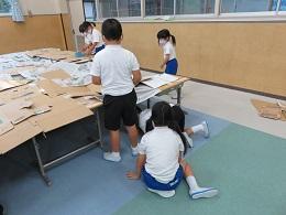 2年生は、一学期に頑張ったご褒美としてお楽しみ会を行いました。机を並べた上に段ボールを載せ、所々に自分たちで考えたクイズを置いた迷路を作りました。考えること・工夫すること・協力しながら準備すること、一学期に学習した成果を発揮する楽しいお楽しみ会になりました。