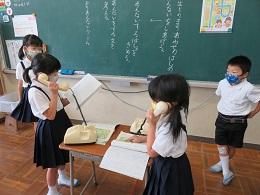 2年生は、国語の時間に電話で道案内をしましょうという学習活動を行っていました。相手にわかりやすく伝えることの難しさを感じながらも、楽しそうに伝えようとしていました。