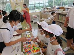 当たった子どもたちは、賞品の図書委員作成の折り紙や塗り絵をもらってうれしそうでした。