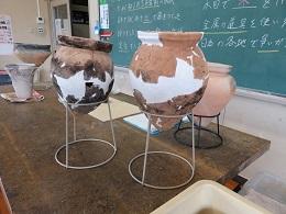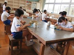 6年生は、市役所スポーツ文化課の方から教えていただきながら土器づくりに挑戦しました。初めてながらなかなかの作品に仕上がりました。9月2日に焼き上げるのが楽しみです。