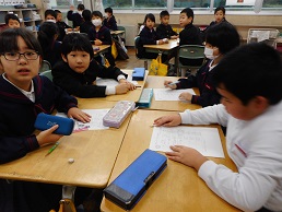 6年生は、かほく市福祉協議会の方や環境防災対策課の方々に指導していただきながら、防災学習としての避難場運営ゲームに真剣に取り組みました。いざという時に地域のために活躍できる人となれるように意識を高めることができました。