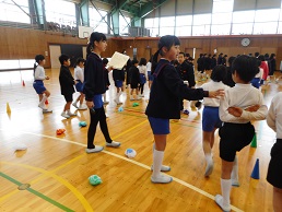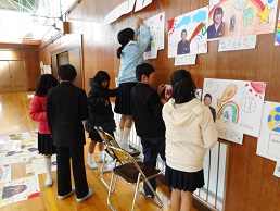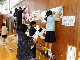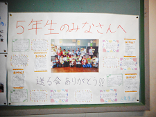 6年生を送る会を成功させるために、5年生は、1,2年生の教室で朝の歌練習指導をしてくれました。まだ自信のない子どもたちも、指導のおかけでずいぶん大きな声で歌えるようになりました。6限目は、4,5年生が協力して、会場の飾りつけをしました。