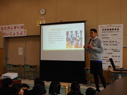 また、学校保健委員会では、「あなたのしせいはだいじょうぶ?」をテーマに、健康委員の子どもたちが、楽しい劇やアンケート結果をもとにしたスライドで姿勢の大切さを説明してくれました。パーソナルトレーナーの安達哲郎先生からも、姿勢が大切であることの意味やすぐにできる姿勢体操を教えていただきました。保護者の方も一緒に姿勢体操に挑戦していただきました。とても楽しくためになる会になりました。