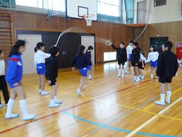 2月6日は、5年生が考えた遊びで楽しむなかよし活動を行いました。また、7日は息を合わせ、心を合わせて、なかよし班対抗の八の字とび(大縄跳び)大会に臨みました。200回以上も続けて跳んだ班もあり、どの班も好成績でした。