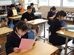 2020年2月10日 18時17分4年生は、6年生を送る会の招待状を作成し、教室まで渡しに行きました。6年生一人ひとりのための招待状を、子どもたちは嬉しそうに読んでいました。