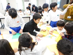 また、昼休みは、飾り付けの花を全学年のちょこボランティアで作りました。指導役の5年生は大忙しでした。