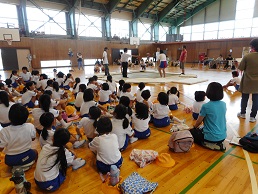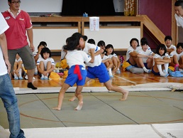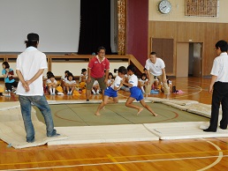 7月29日(日)大海校区学童相撲大会がPTA主催で開催されました。一週間前に金沢学院大学の相撲部の皆さんに指導していただいたことで、どの取組も真剣勝負でした。本当に本物の力士の方に負けないくらい迫力がありました。