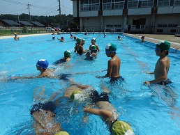 お待たせしましたが、本日8月5日からプール開放を再開しました。ご心配ご迷惑をおかけしましたが、やっと子どもたちが利用できるプールになりました。子どもたちは、水がぬるいと言いつつも楽しそうに泳いでいました。