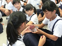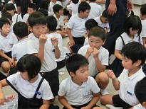 8月6日の平和学習の後、高松中学校の一年生が育てたブドウを全校児童でいただきました。甘くてとてもおいしいブドウでした。