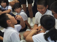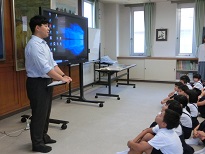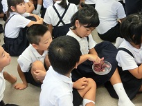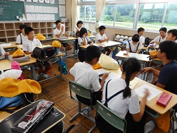 8月6日の登校日、会議室で全校児童一緒に平和学習を行いました。