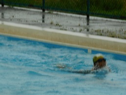 2019年8月22日 17時15分高学年の登校日、子どもたちはとても元気でしたが、雨の中の水泳記録会になってしまいました。