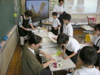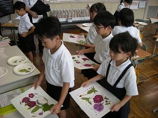 押し花の先生葛葉さんが、出来上がったアサガオの押し花を持ってきてくださいました。子ども達はそれを使い、画用紙の上に思い思いに押し花を配置し、自分だけの作品を仕上げました。葛葉さん、本日もご指導ありがとうございました。
