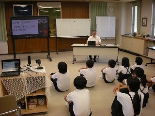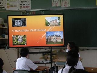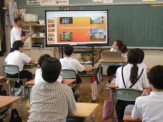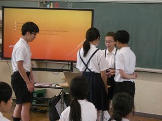 6年生の子たちに自分の学校の事をプレゼンしてくれました。日本語もとても上手で、わかりやすく楽しめるプレゼンでした。子どもたちにとって、異文化体験ができるいい機会となりました。