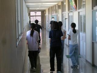 早朝から多くの保護者の方々、4~6年児童に参加していただき、PTA親子奉仕作業が行われました。保護者の方々や児童には校舎の窓ふき、掃除をしていただきました。PTA生活環境部の方々には、暑い中、運動場の除草剤散布と側溝の泥上げをしていただきました。
