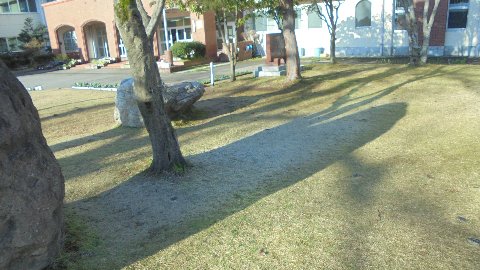 写真から分かりますかね。今朝は寒さで霜が真っ白!でも、陽が差してくっきりとまだ白いところと融けたところが模様になっていました。校庭ではいつの間にかツクシがいっぱい、春ですねぇー。