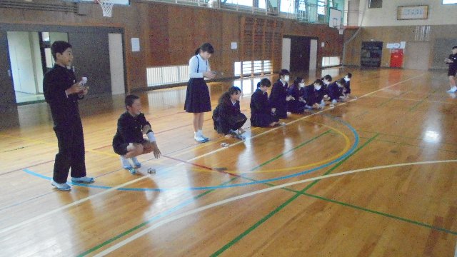 体育館でもできる理科の実験。コンデンサーとモーターの関係をしっかり体感します。