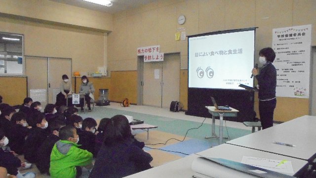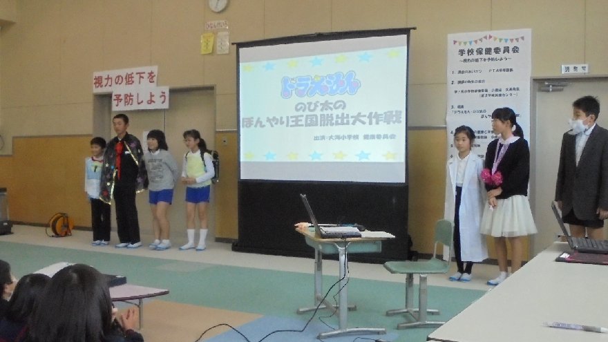 今年の学校保健委員会のテーマは、目の健康でした。健康委員会のみなさんたのしい劇発表ありがとう、とっても上手でした。小鹿山先生、目と栄養の話ありがとうございました。学年部のみなさんお世話ありがとうございました。