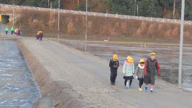 5年生が頼もしく登校班のリーダーとして先頭で歩いてくれました。ありがとう。2ヶ月後のいい練習にもなりました。長く工事をしていて、柵やロープをしてありましたが、はずしてすっきりしました。