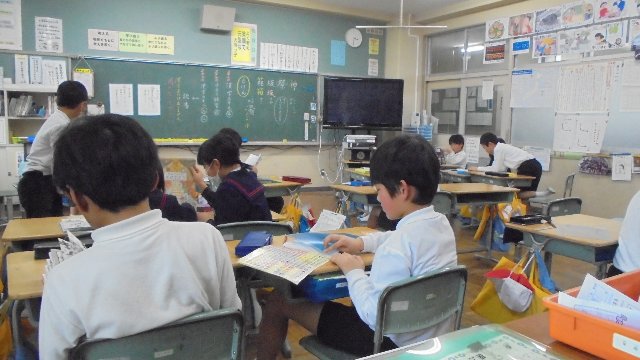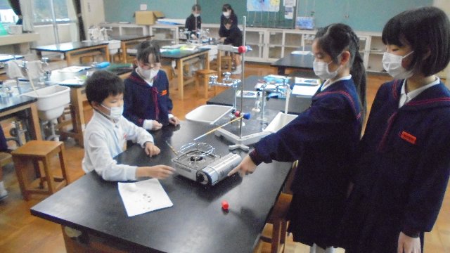 3年生が漢字スキルに取り組んでいます。4年生がものの温まり方の実験をしています。
