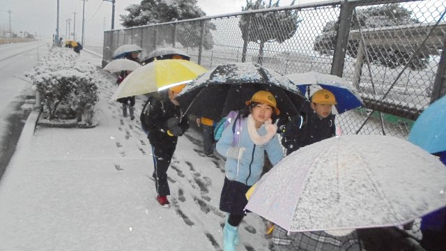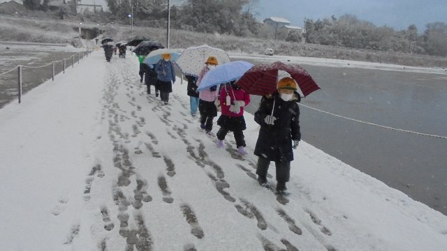 週明け雪が積もりました。一昨日は大寒、やはり寒い季節なのですね。でも、去年に比べればこんなの雪に入りませんね。今週も元気に登校!足跡を踏みしめ学校へ、帰りはとけているかな。