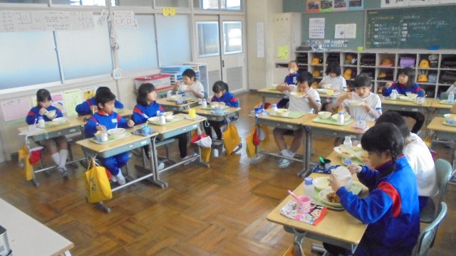 今年初カレーが先週出たときに教室を一回りしました。どのクラスも良い食べっぷりでした。美味しそうですね。