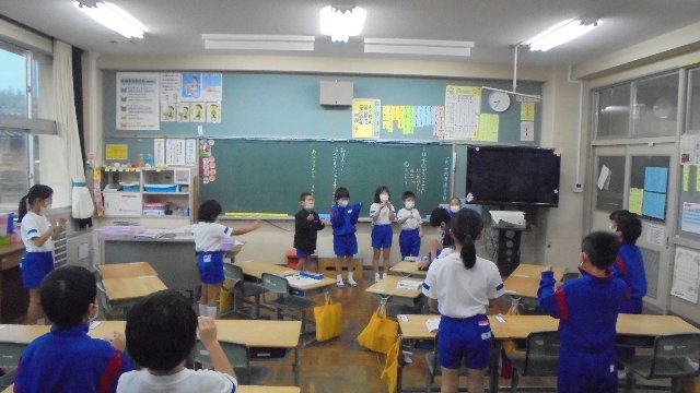 進んで先生のお手伝いをしているのは道原さんです。重そうだったので手伝おうかと声かけすると、「だいじょうぶです。」と力強い返事が返ってきました。本当にえらいね。こんな子がたくさんいる大海小学校です。