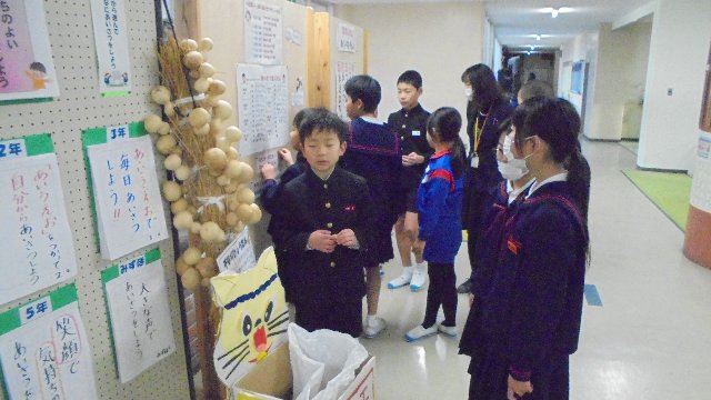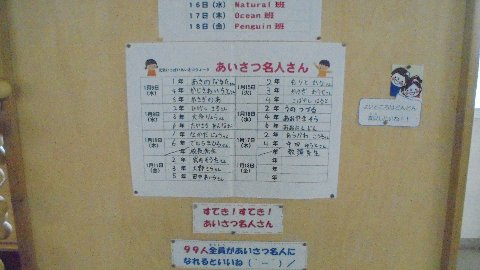 今朝は、縦割り班朝のあいさつ運動最終日でした。いつものように元気にあいさつして周り、児童玄関で元気の良いあいさつ名人を決めて掲示に記入していました。今までのを見てみると校長や教頭の名前もあります。最終日今日は誰だったのでしょう。