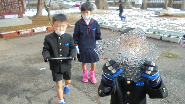 まだ、氷が薄いな。満足のいく雪や氷がなかなか見つからず・・・池やプールが凍るくらいの寒さが来るといいな・・・大人とは違いますね。おーい、氷を持っているのはだーれ?顔が見えないよ(笑)