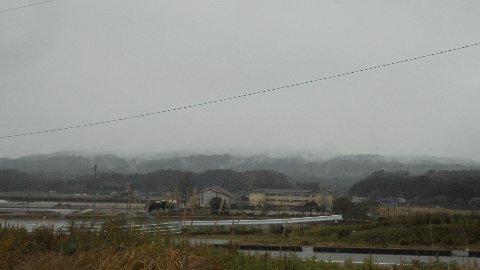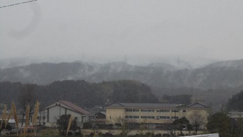 今朝の宝達山は雨に煙っていました。