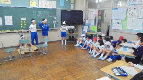 2年生が国語で学習している「お手紙」の音読劇を3年生の教室に出かけて発表しました。3年生は去年学習を終えています。見た後、後輩たちにほめながらたくさんアドバイスをしていました。こんな交流すてきですね。