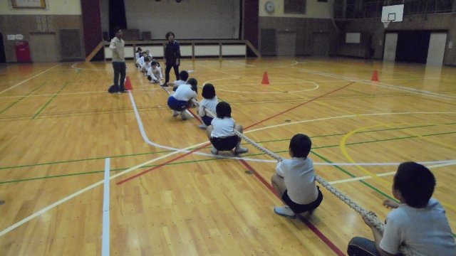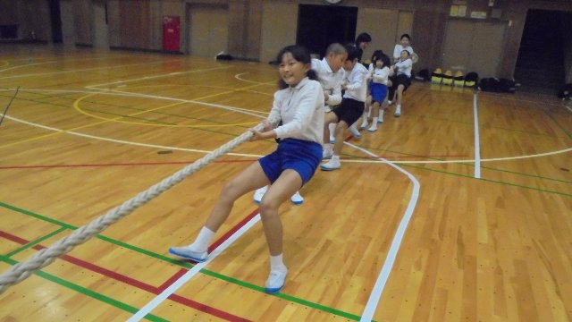 2018年12月1日 15時50分 今週、子ども達が下校した夕方の体育館から「そーれ、そーれ」の大きなかけ声が聞こえてきました。体育館をのぞいてみると、中沼地区の子ども達が子ども会役員の指導の下、来月開催される子ども会綱引き大会の練習をしていました。全員参加で3チームで参加するそうです。