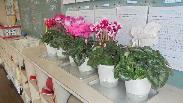 明日は、ありがとう集会です。日頃お世話になっている方々を招待して感謝の会を催します。ふるさと学習の成果も発表し、聞いていただきます。お土産も用意しています。熟成させて蔵出ししたばかりの大海味噌、クラスでお世話やラッピングしたシクラメン、どうぞ受け取って下さい。