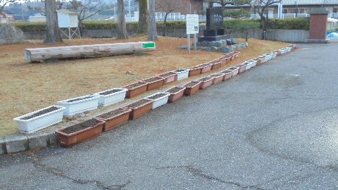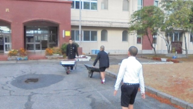 今玄関前プランターの入れ替え真っ最中です。さわやか委員会が中心ですが、通りかかった6年生が手伝ってくれました。頼もしいです。昼休みに低学年の子ども達が苗植えをする用意、これでバッチリです。ありがとう、大西さん、武内さん。中田さんと丹羽さんはさわやか委員です。みんな坊主頭、偶然です。