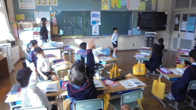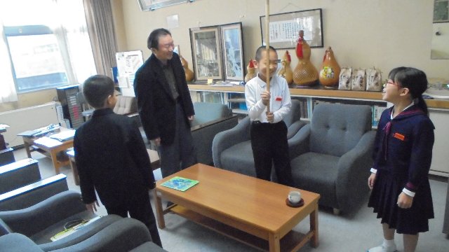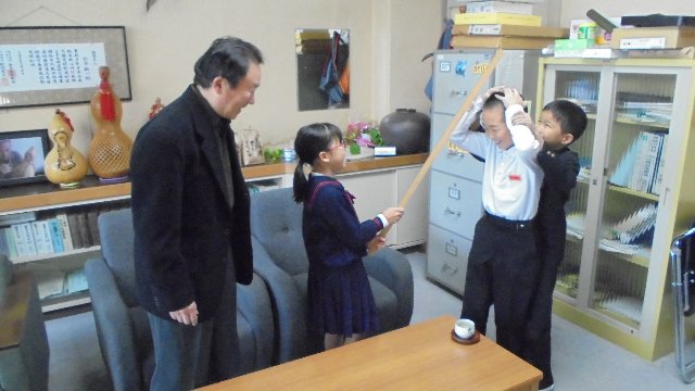 学校のお向かいさん、鮎釣り名人谷口さんにちょっと来ていただいて総合的な学習のインタビュー。なにやら長い物差し、何を聞いているのでしょうね。今週金曜はありがとう集会、たくさんの方をお招きして感謝するとともに、地域ふるさと学習の成果を聞いていただきます。きっとその内容の確認なのでしょう。
