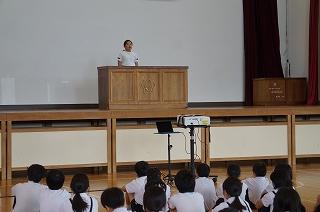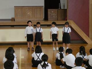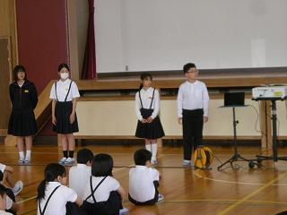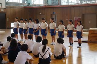はやいもので、もう一学期の折り返し地点です。1限目に体育館で6月の全校集会を行いました。校歌、校長先生のお話、5月の生活目標の振り返りを行いました。各学級の代表は立派に振り返りを発表できました。その後、田辺先生からの6月生活目標のお話で全校集会を終えました。集会後には話し方大会・器械運動交歓会のリハーサルを行いました。これまでの練習した成果が表れていました。本番も楽しみです!
