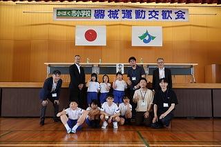 本日、宇ノ気小学校体育館で器械運動交歓会が行われました。大海小は七塚小、宇ノ気小と前半の部に参加しました。