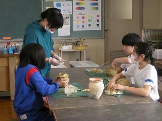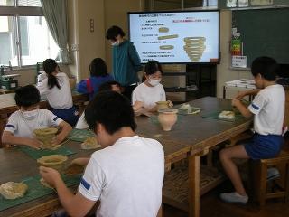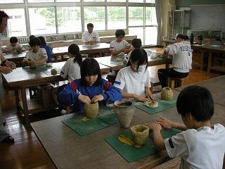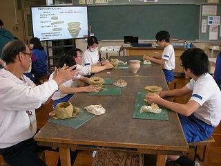 2、3限目に6年生が土器作りに挑戦しました。かほく市教育委員会スポーツ文化課の方々にご指導いだきました。どの子も丁寧に作業し、上手に作り上げていました。しっかりと乾燥させてから焼いて完成します。焼き上がりが楽しみです。
