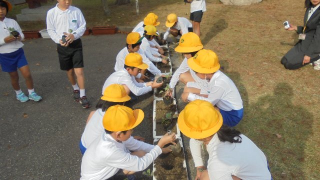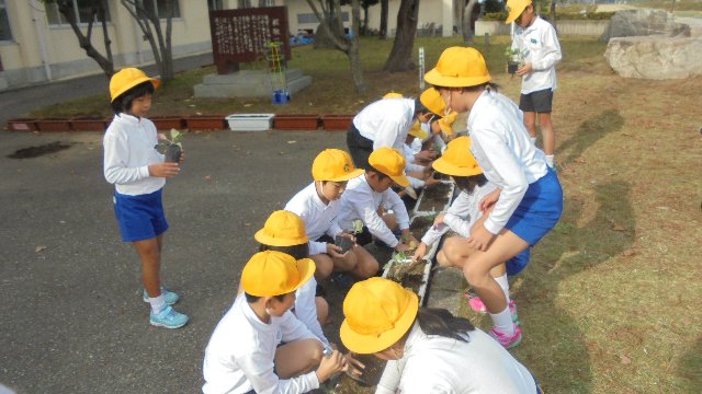 天気の良い日を見つけて、キャベツを植えました。来年の3年生がちょうの学習する準備です。今年学習を終えた先輩として、今の2年生への贈り物です。ありがとう。