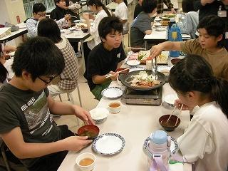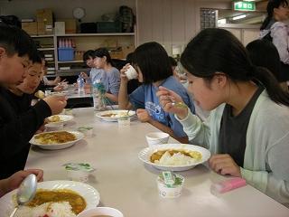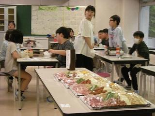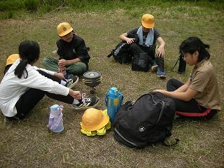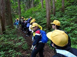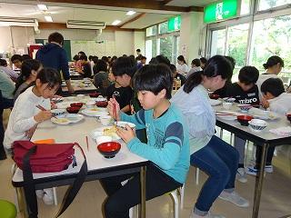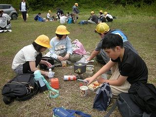 自然の家到着後、早速1つ目の活動である登山に行きました。標高891m、白抜山の登山です。険しい道をみんなで声をかけ合い、励まし合いながら登った山頂から見える景色は絶景でした。途中、昼食時にはバーナーでお湯を沸かし、温かいカップ麺やみそ汁を食べ、元気回復できました。