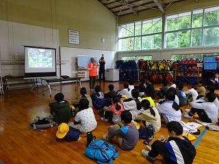 宿泊体験学習2日目。朝のつどい~掃除~朝食 規則正しいリズムで2日目の活動がスタートしました。同じ日に宿泊していた内灘町の向粟崎小学校の皆さんに大海小学校のことを紹介しました。2日目の活動は「キャニオンロードサイクリング」でした。手取峡谷に沿って走る自転車専用道路「キャニオンロード」を二人乗り自転車で走りました。二人乗り自転車に乗るのは思った以上に難しく、最初にしっかりと練習をしてから出発しました。白山ろくの景色を満喫しながらサイクリングを楽しみました。2日間の活動もあっという間に終わり、楽しく体験学習を終えることができました。天気も大海っ子に味方し、予定していた全ての活動を楽しめました。思い出に残る二日間だったと思います。この経験を学校生活にしっかり生かしてほしいと思います。