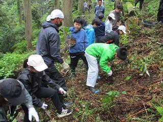 5,6年生の子ども達・保護者の皆さんで野寺にある学校林で植樹を行いました。前日は雨が降り、足元がぬかるむ中での作業となりました。また、5/29.30に宿泊体験学習に行ったばかりの子ども達ですが、学校林でも元気に活動していました。PTA環境生活部の皆さんには前日に準備もしていただき、ありがとうございました。また、金沢森林組合の岩佐さんにも大変お世話になりました。植樹した苗が大きく成長し、学校林を豊かにしてくれることを願っています。