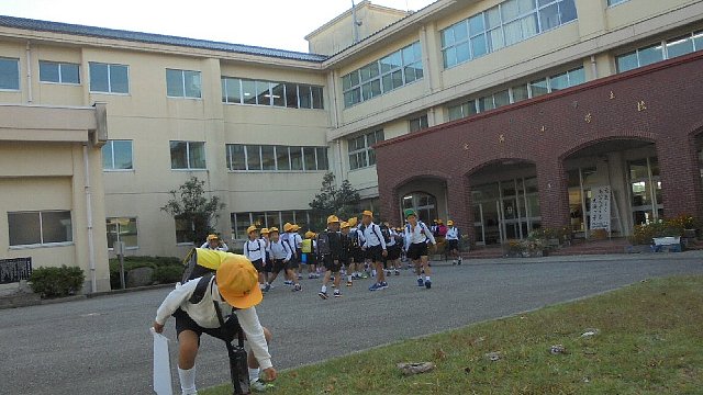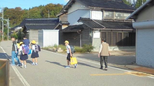 低学年下校、熊の目撃情報があったので家の近くまで職員が見送りました。瀬戸町では家族がいつものようにお出迎え、八野のみなさんは1年生の子のお父さんが学校近くまでお出迎え。温かい地域家族ですね。