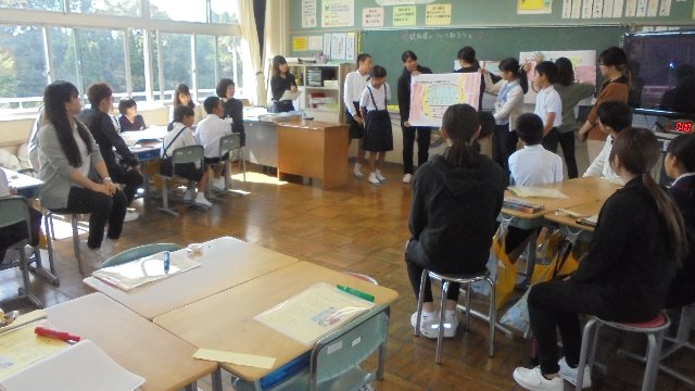 総合的な学習の時間ESDの取り組みとして認知症の学習を進めています。先日のイチゴ会ボランティアグループに引き続き、看護大の4年生のみなさんが6年教室でいっしょに勉強して下さいました。お互い良い刺激を受けたようです。次回も報告します。お楽しみに。