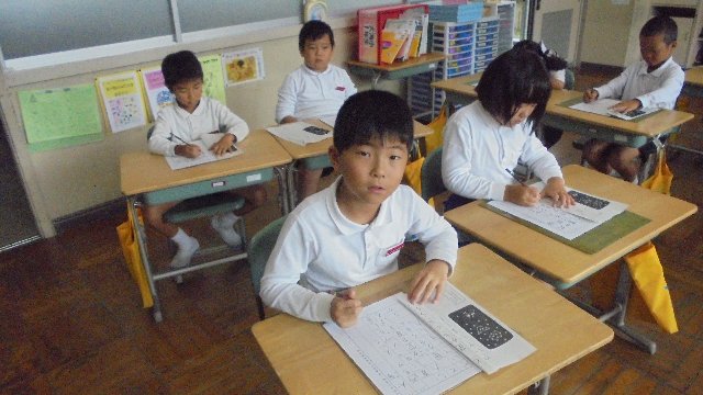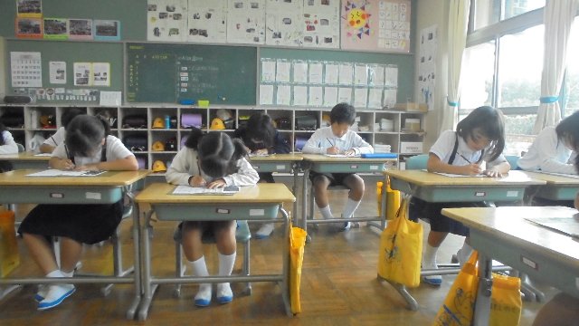 各教室、書写コンクールの作品仕上げに励んでいます。写真は2年生ががんばっている様子です。