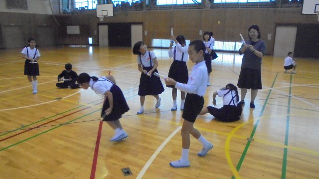 もう一枚の写真は体育館で4年生が理科の学習をしていました。